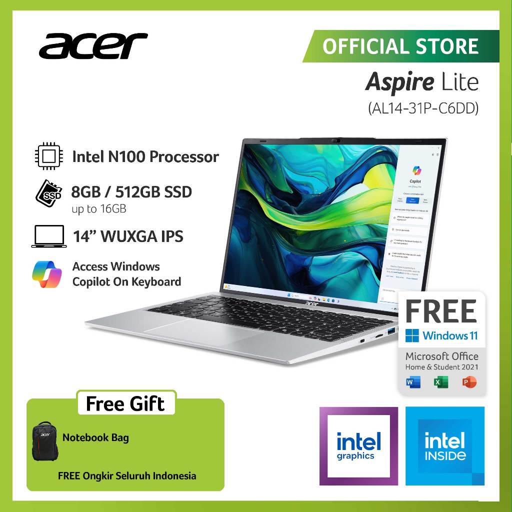 (BEST SELLER) ACER LAPTOP ASPIRE LITE AL14-31P-C0G4/C6DD 14" WUXGA INTEL N100 RAM 8GB STORAGE 512GB SSD INTEL UHD GRAPHICS WINDOWS 11