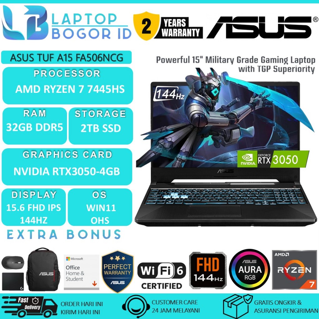 ASUS TUF GAMING A15 FA506NCG RYZEN 7 7445HS 32GB RAM 2TB SSD RTX3050 15.6 FHD IPS 144Hz W11+OHS