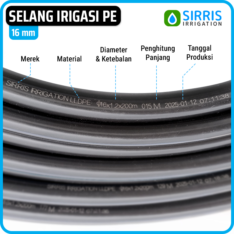 1 Rol (500 Meter) - Selang Pe 16 Mm - Fertigasi / Irigasi / Hidroponik
