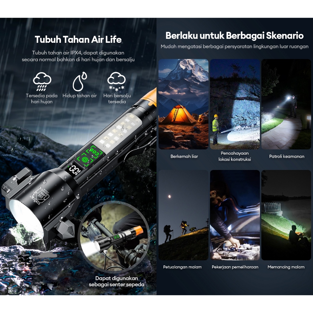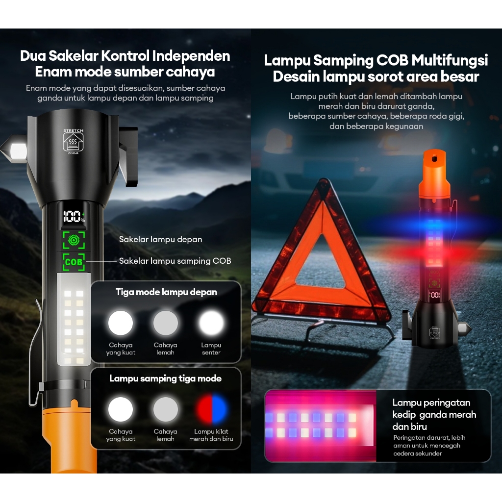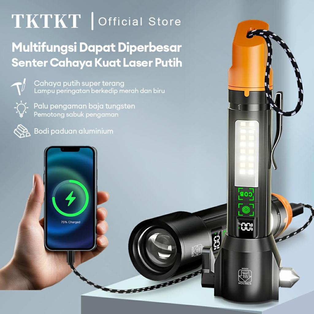 SENTER LED SUPER TERANG TKTKT 3000 LUMENS SENTER SUPER TERANG 6 MODE PENCAHAYAAN LAMPU SENTER DENGAN PALU PEMECAH KACASE