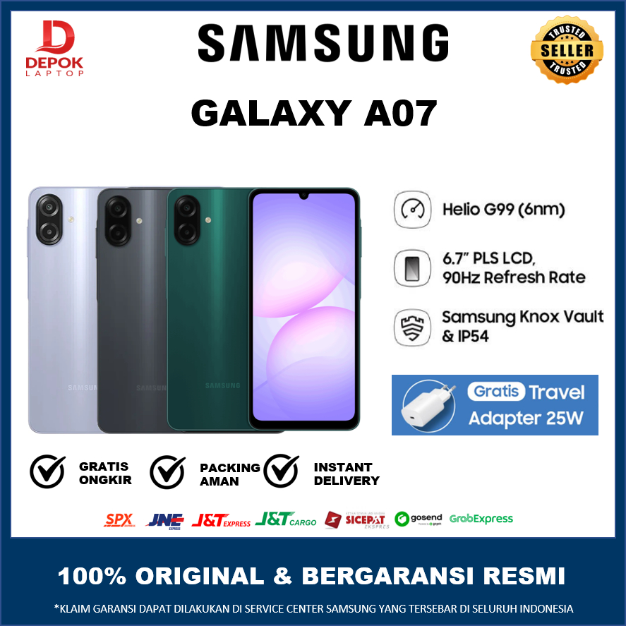 NEW Samsung Galaxy A07 8/256GB | Helio G99 | 90Hz 6.7 inci | 5000mAh | 50MP | FREE ADAPTER 25W