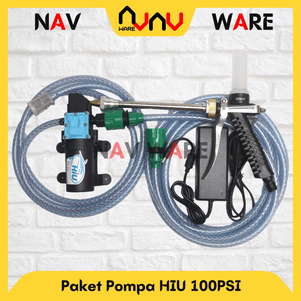 Paket Lengkap Hiu 100Psi Pompa Air Dc 12V Selang Out Quick Release Alat Cuci Motor Mobil High Pressure Steam Sprayer Gun