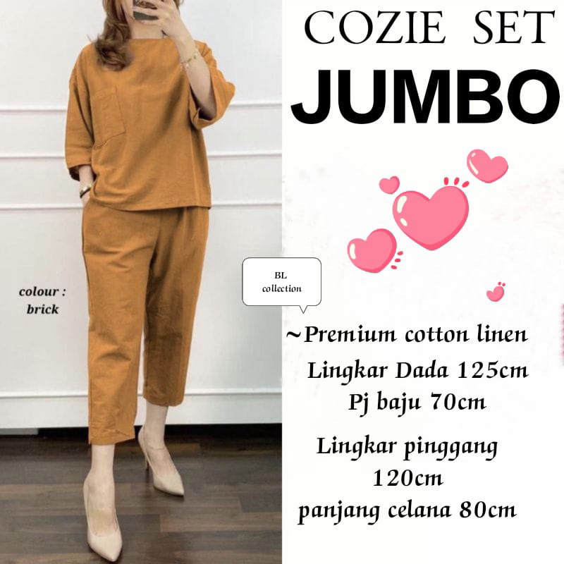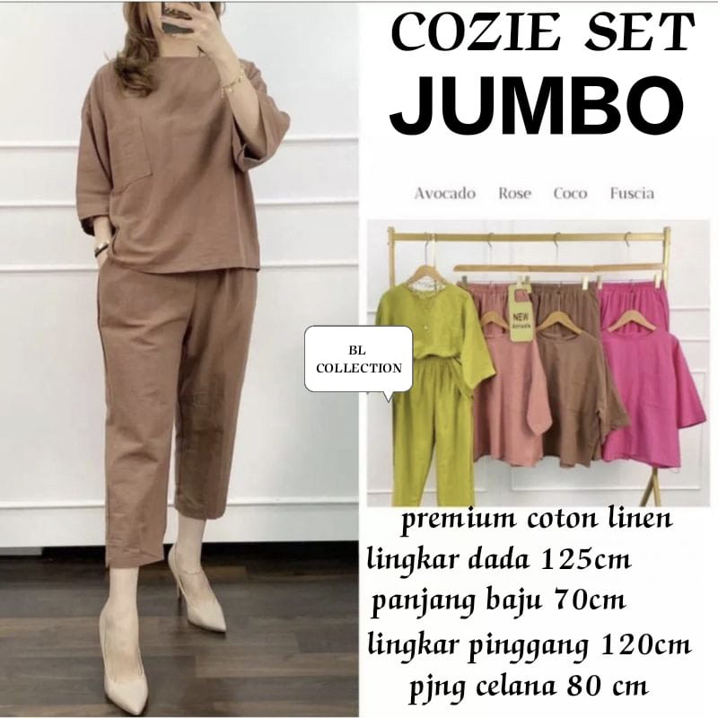 COZIE ONE SET JOMBO setelan wanita TERBARU XXXL one set KATUN Linen premium TERLAKU TERLARIS kekian one set jumbo murah termurah