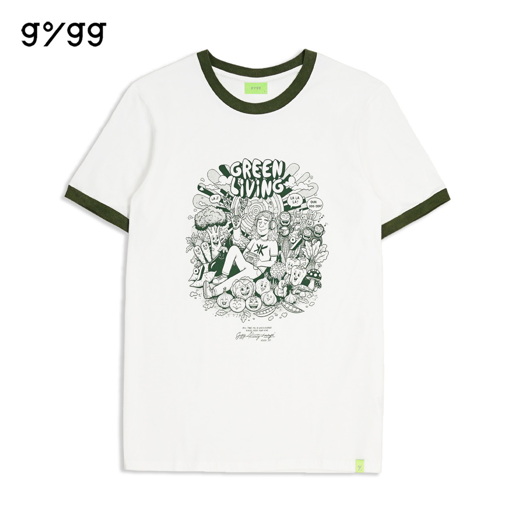 Gigg x Kaka Slank - Green living - Ringer Tshirt Putih Cowok - Cotton Combed 24's - Baju Kaos Pria