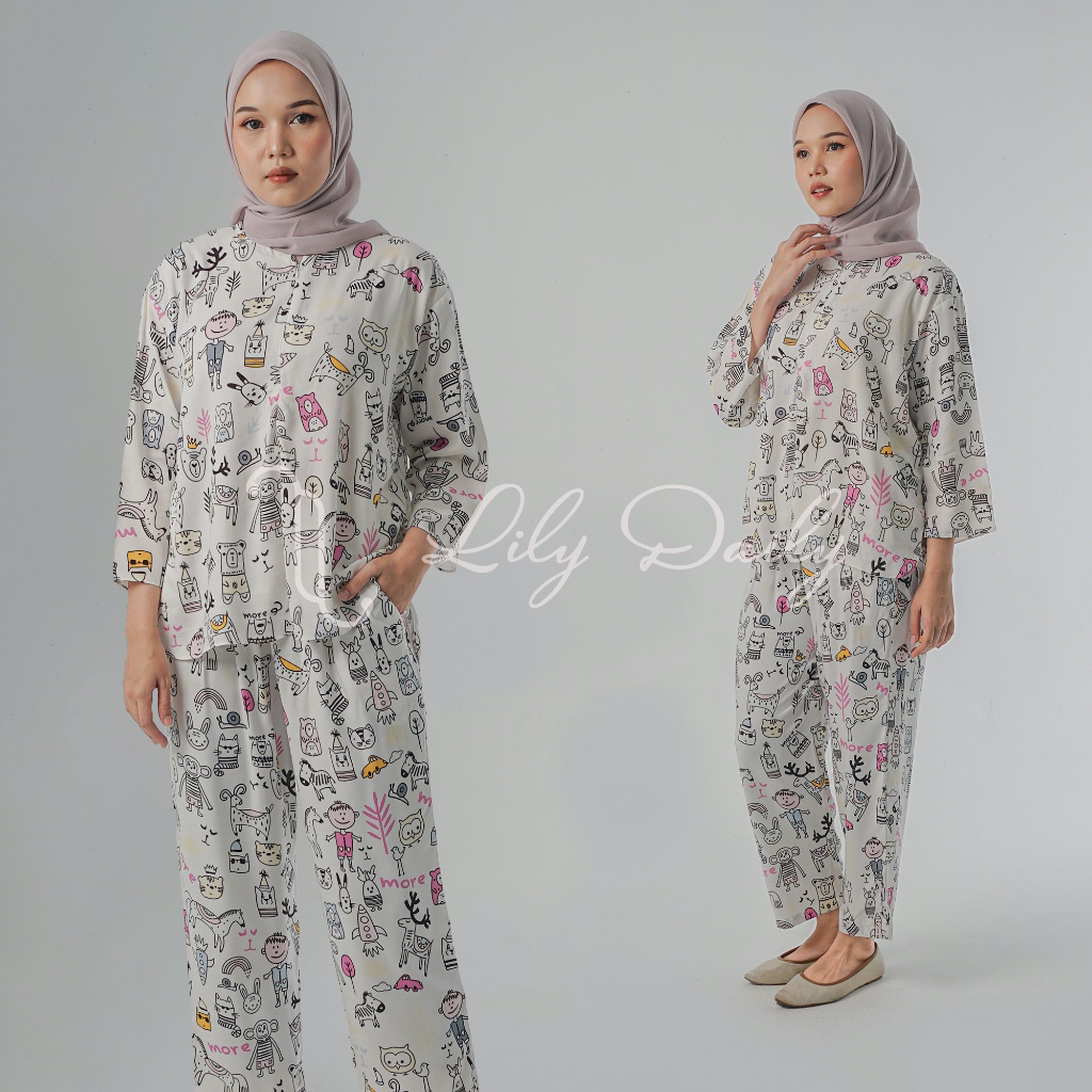 Cyra One Set Rayon Premium Setelan Wanita Kekinian Jumbo Adem Busui Motif Terbaru By Lily Daily
