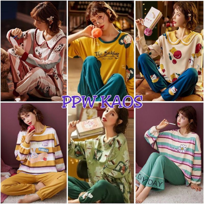 STELAN PP PREMIUM KAOS IMPORT / SET BAJU TIDUR WANITA MUSLIMAH LENGAN PANJANG PPW PPP