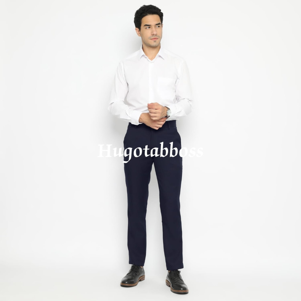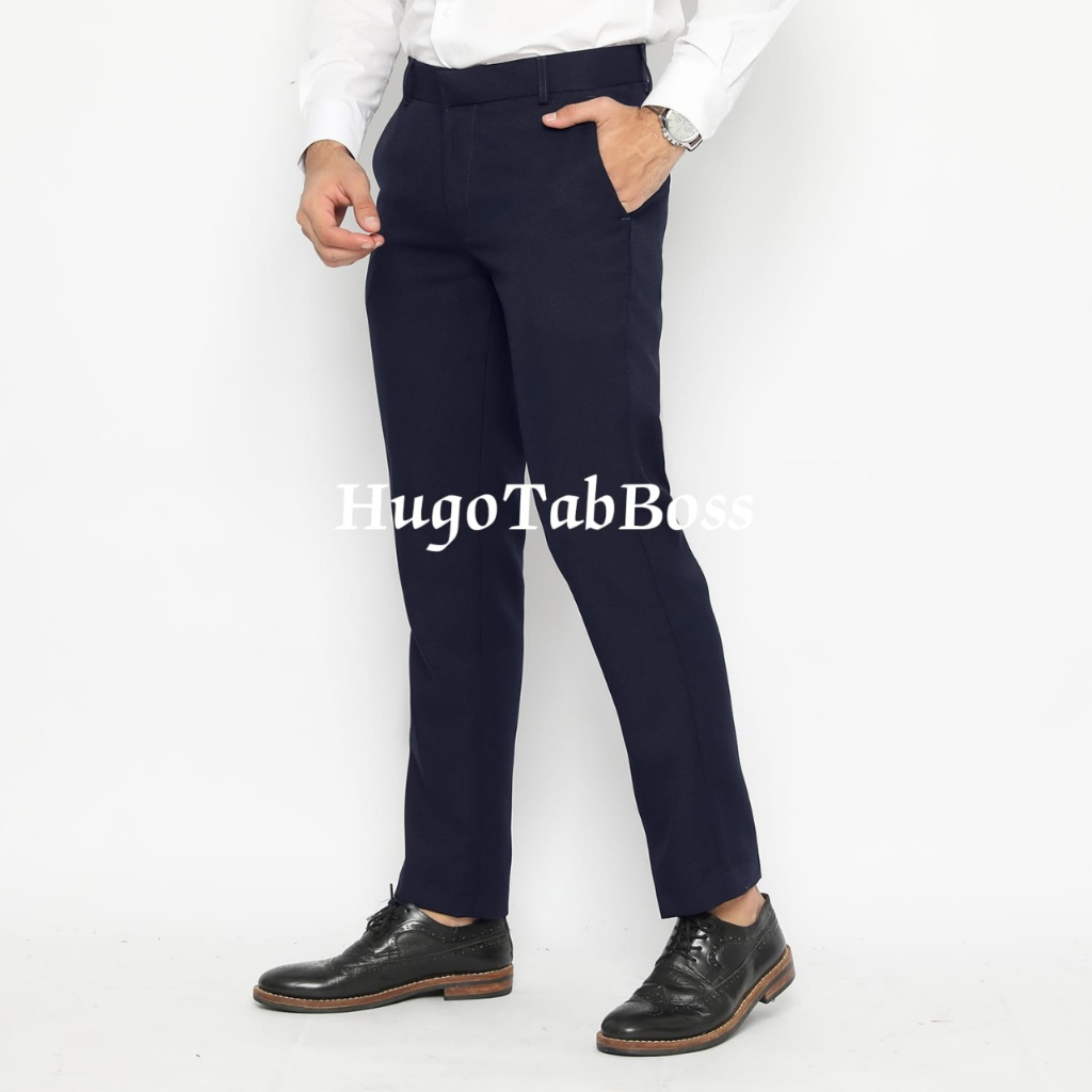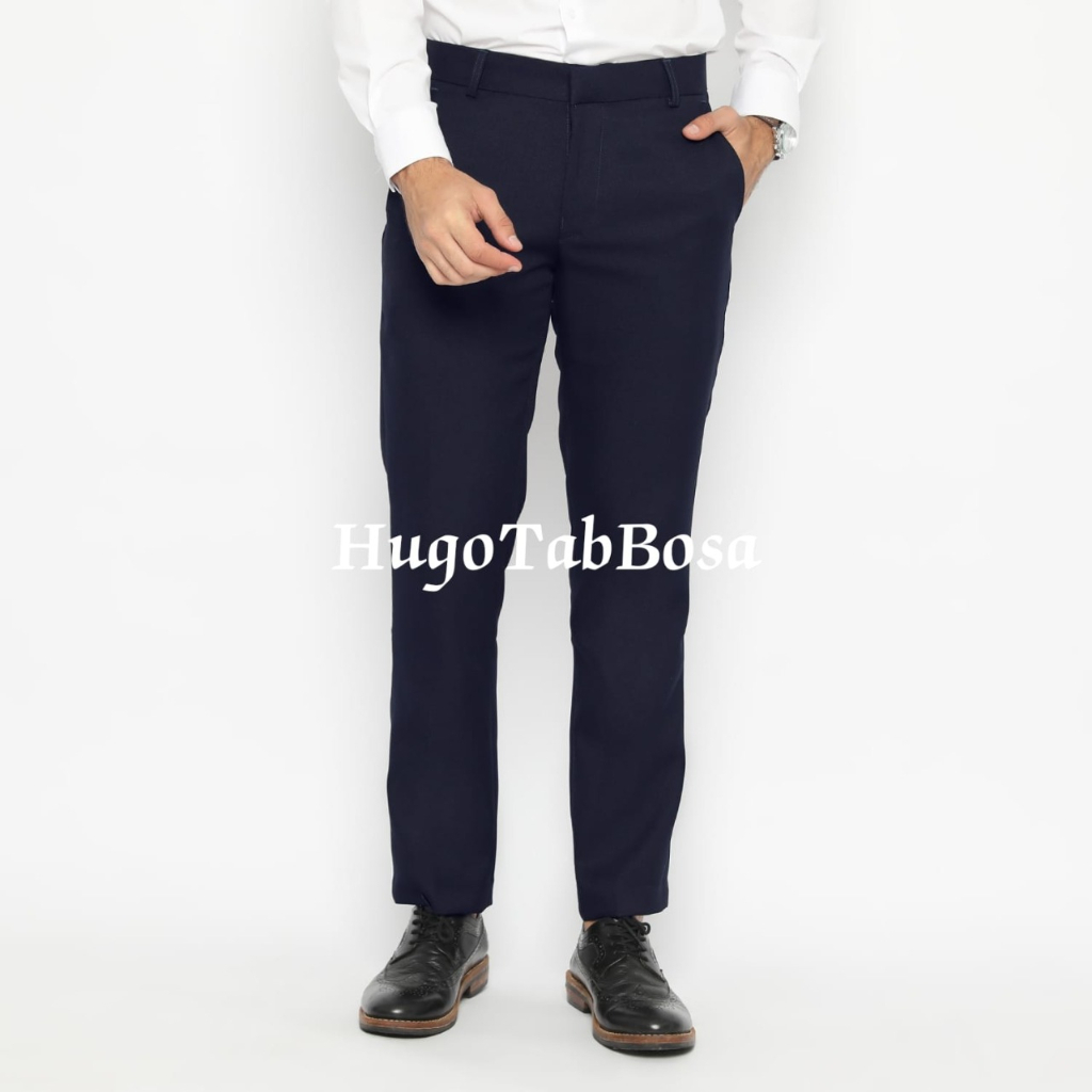 HUGOTAB - CELANA KANTOR PRIA BAHAN SEMIWOLL / CELANA BAHAN SLINFIT / CELANA FORMAL SLIMFIT SEMI WOLL