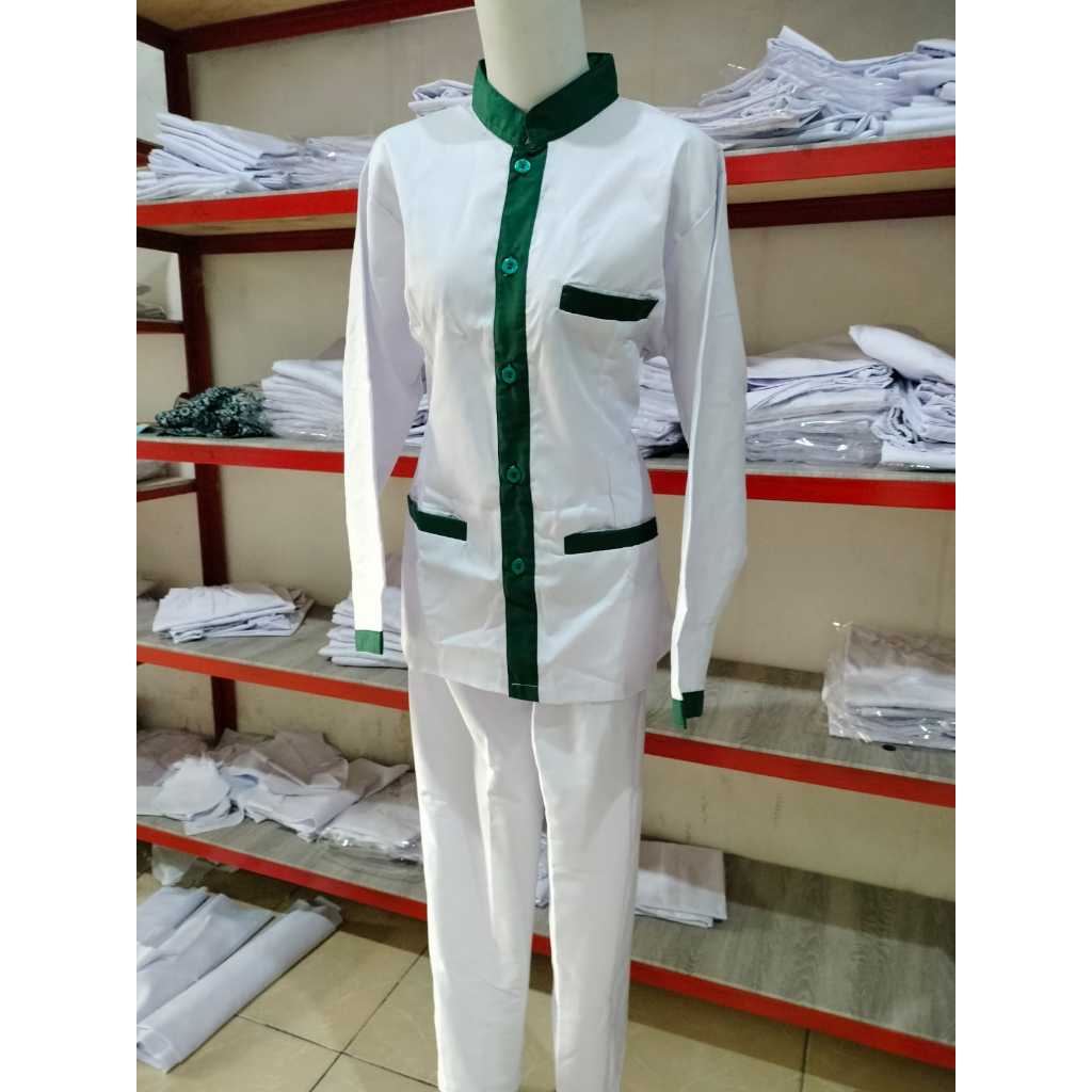 BAJU PERAWAT PUTIH LENGAN PANJANG SETELAN CELANA(BISA REQUEST WARNA)