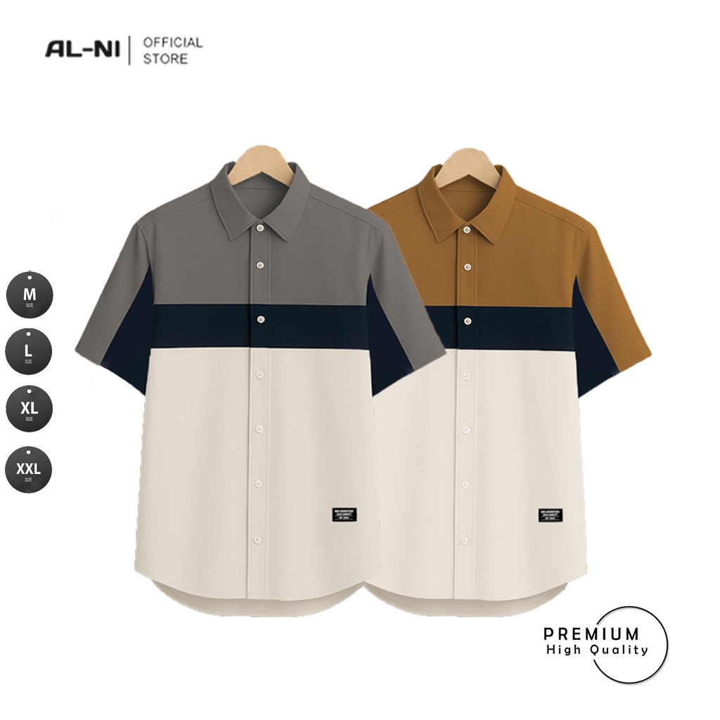 ALNI OFFICIAL STORE - FUJIKAWA SHORT KEMEJA PRIA DEWASA LENGAN PENDEK TERBARU SIMPLE CASUAL BERKUALITAS PREMIUM Dengan Desain Warna yang Menarik