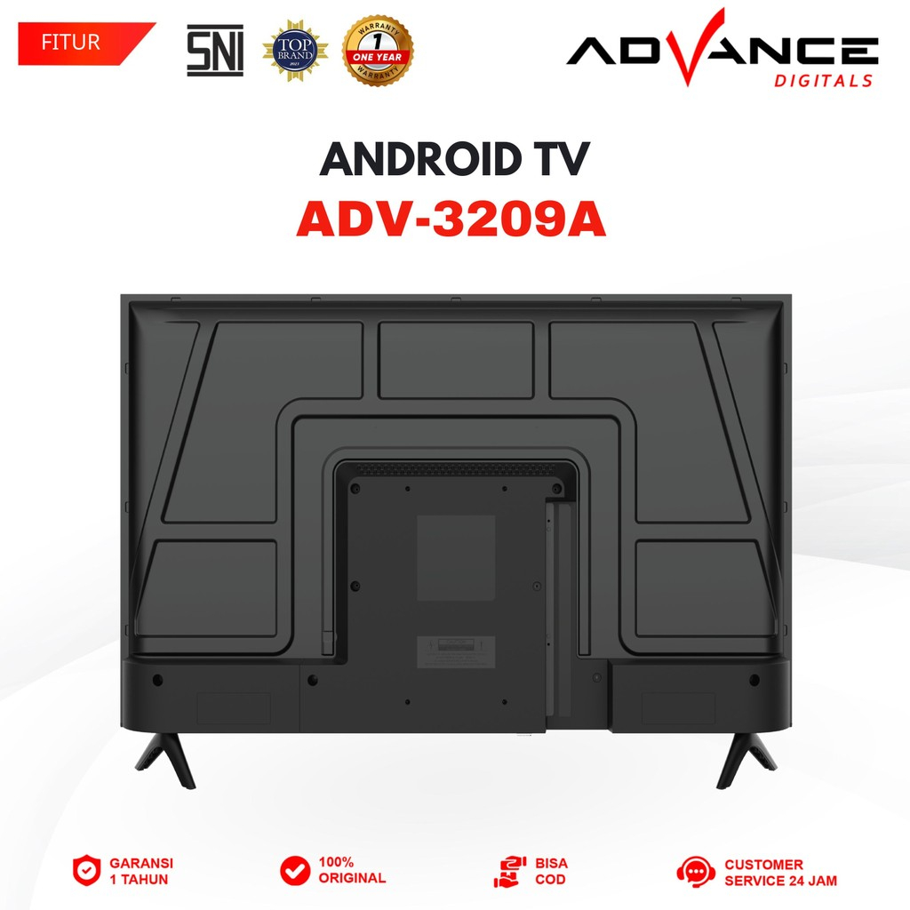 Advance ADV-3209A Android TV Smart TV Full HD 32 Inch WiFi LAN TV Digital DVB-T2 Garansi Resmi 1 Tahun Frameless