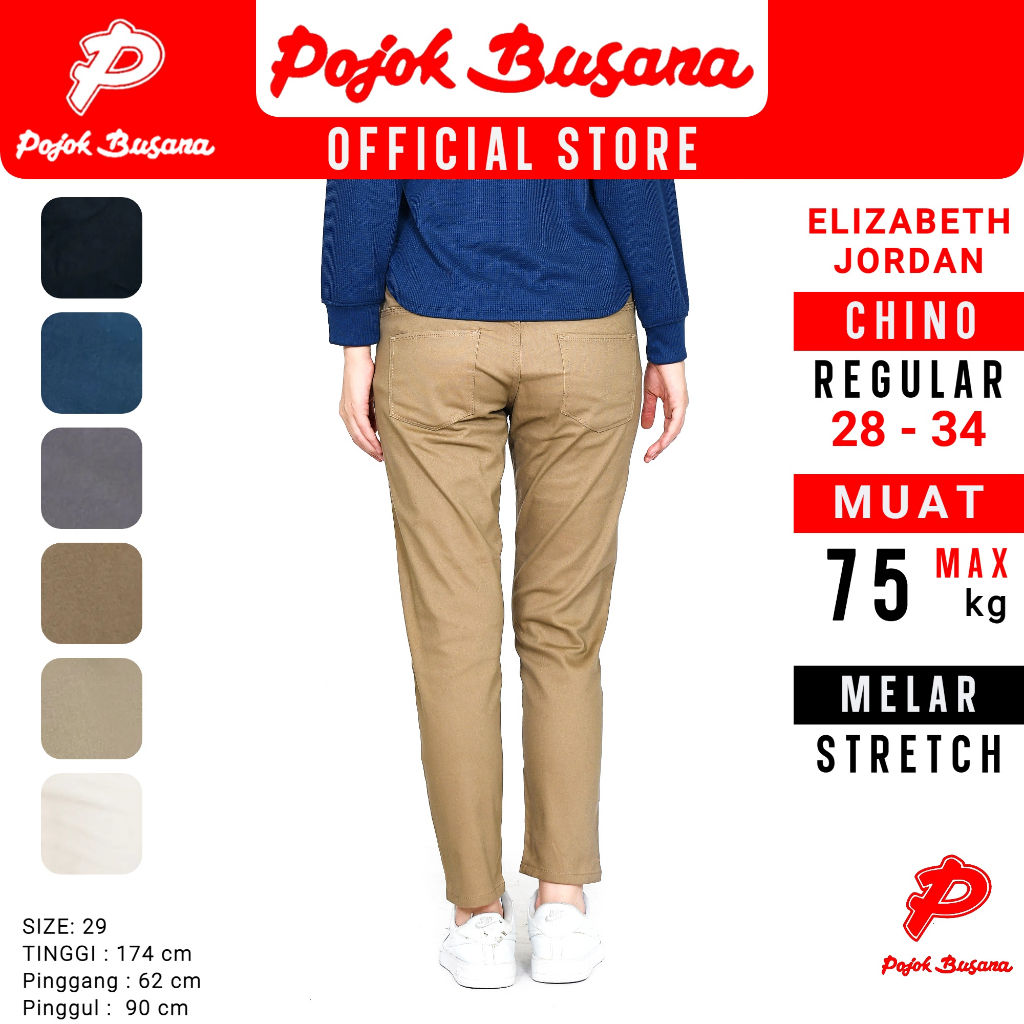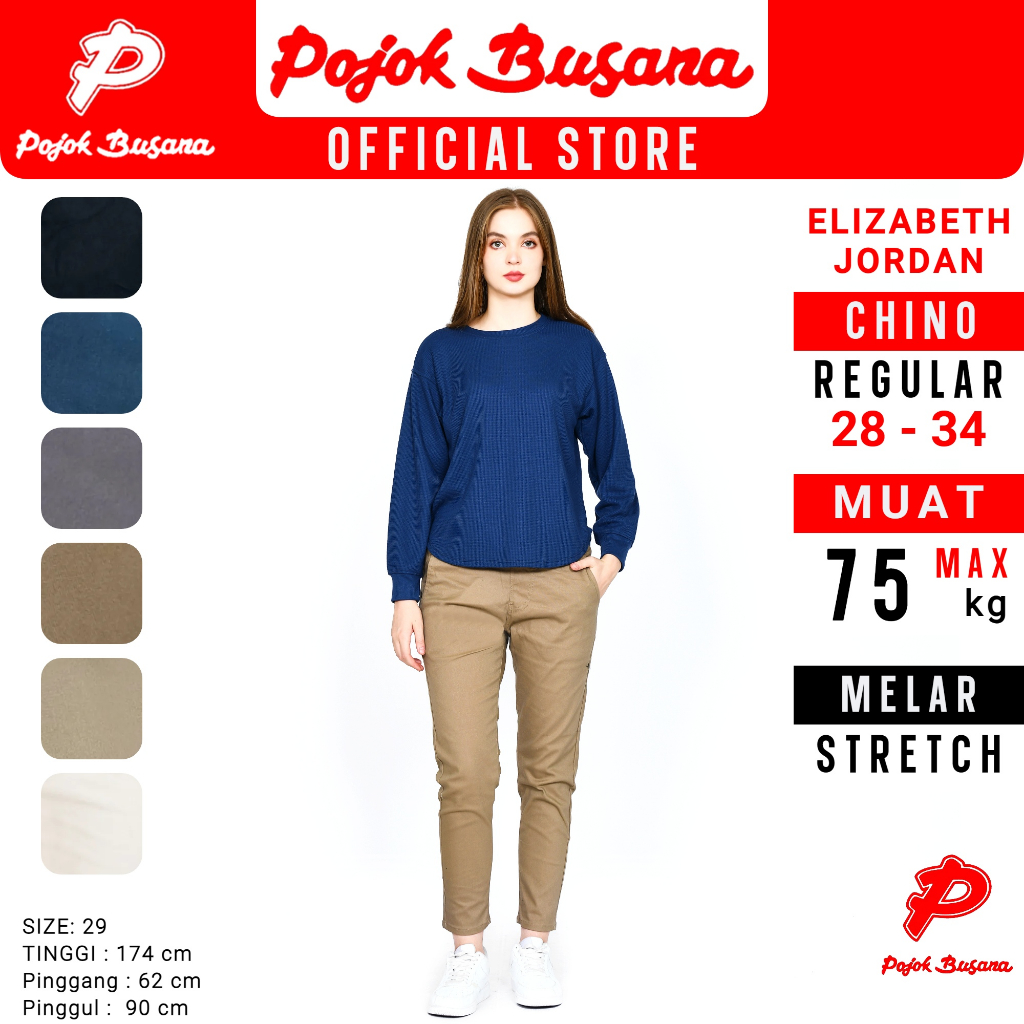Pojok Busana Smart Chino Pants Cotton Premium Stretch Wanita - Celana Panjang Kerja Kantor Kasual