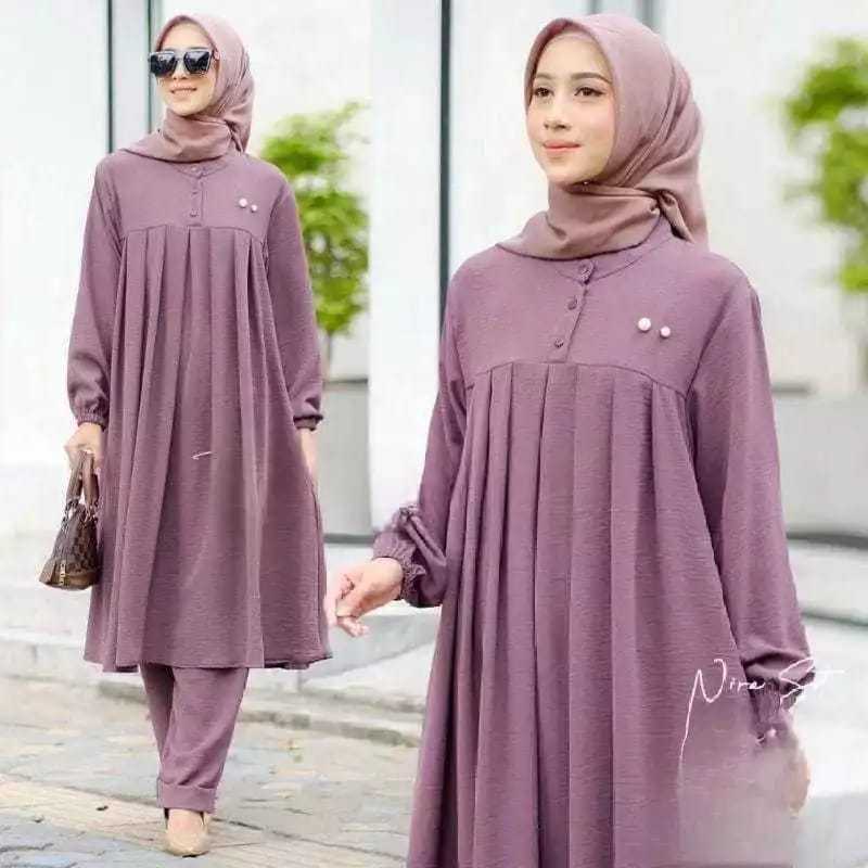 BIG PROMO.. SETELAN NIRA JUMBO BAJU TERBARU /SET 2IN 1 ATASAN LONG TUNIK+CELANA