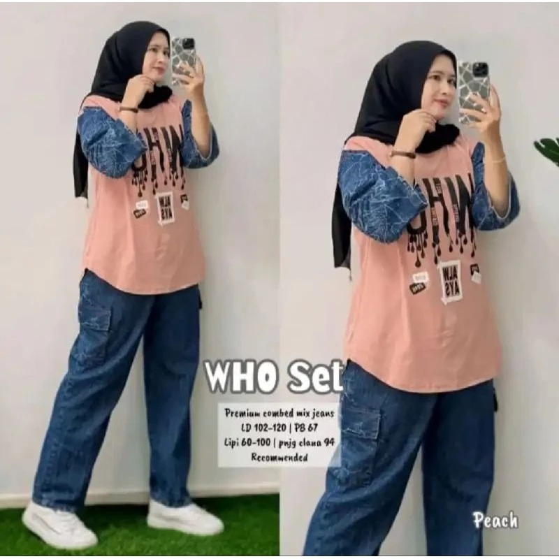 Setelan Wanita Jeans Kombinasi Katun Tebal Lembut