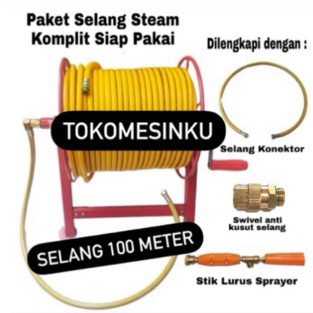 Gulungan Selang Kapasitas 100M Merah Bisa Bongkar Pasang + Selang Kompresor + Selang 1.2M + Gun Stik + Anti Kusut Gulung