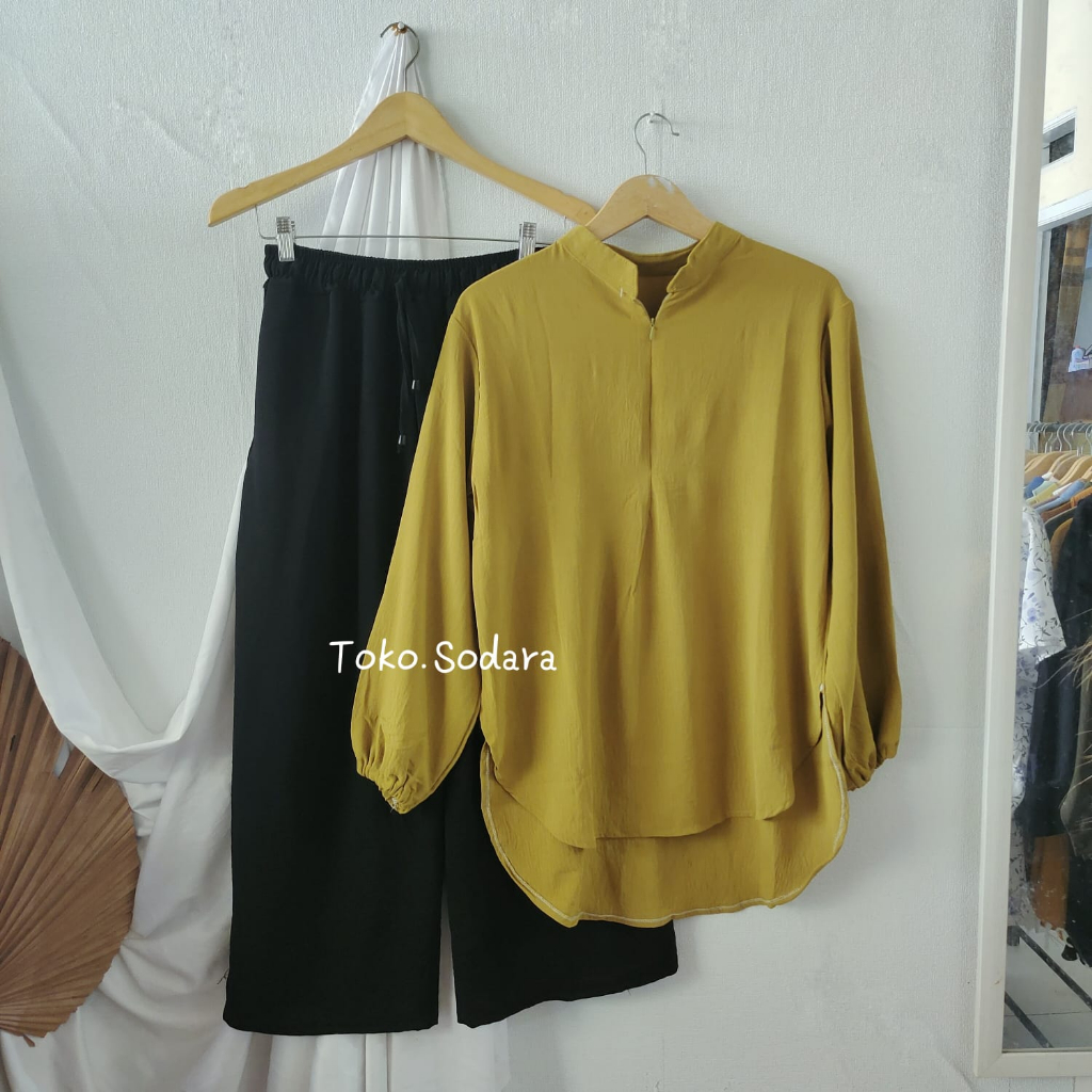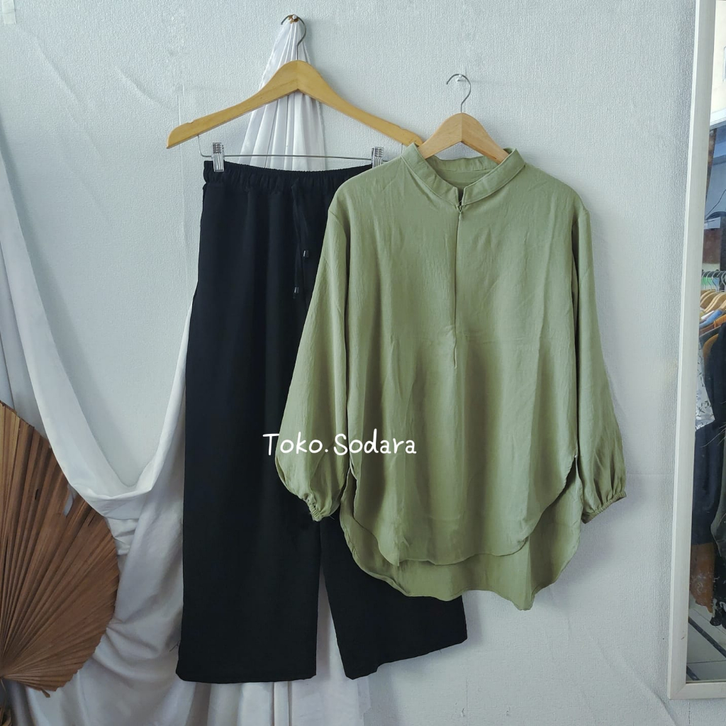 Setelan Fuji Crinkle One Set Pakaian Wanita Resleting Dada Free Bross