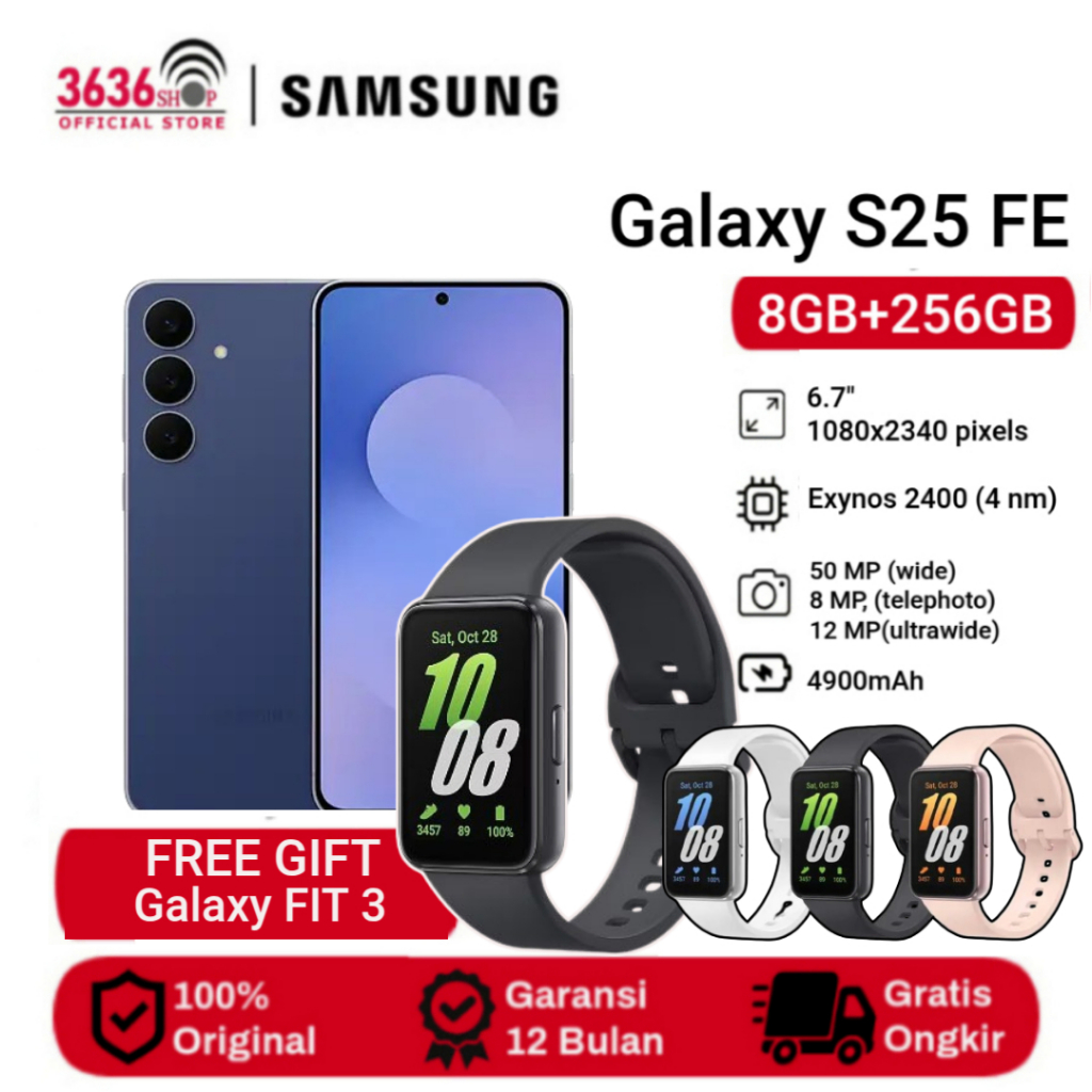 Samsung Galaxy S25 FE 5G 8GB+256GB Free Galaxy Fit 3 - Display Dynamic LTPO AMOLED 6.7 inches - Exynos 2400 - Camera 50MP - 4900mAh - Garansi Resmi