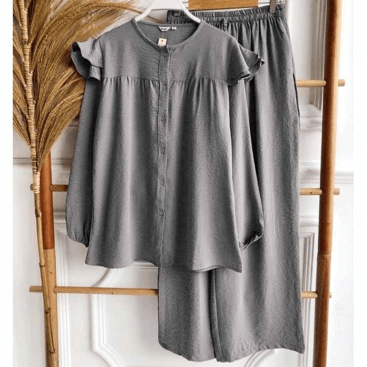 Reva Daily Set JUMBO / Setelan wanita Terbaru / Setelan Celana Bahan Cringkle