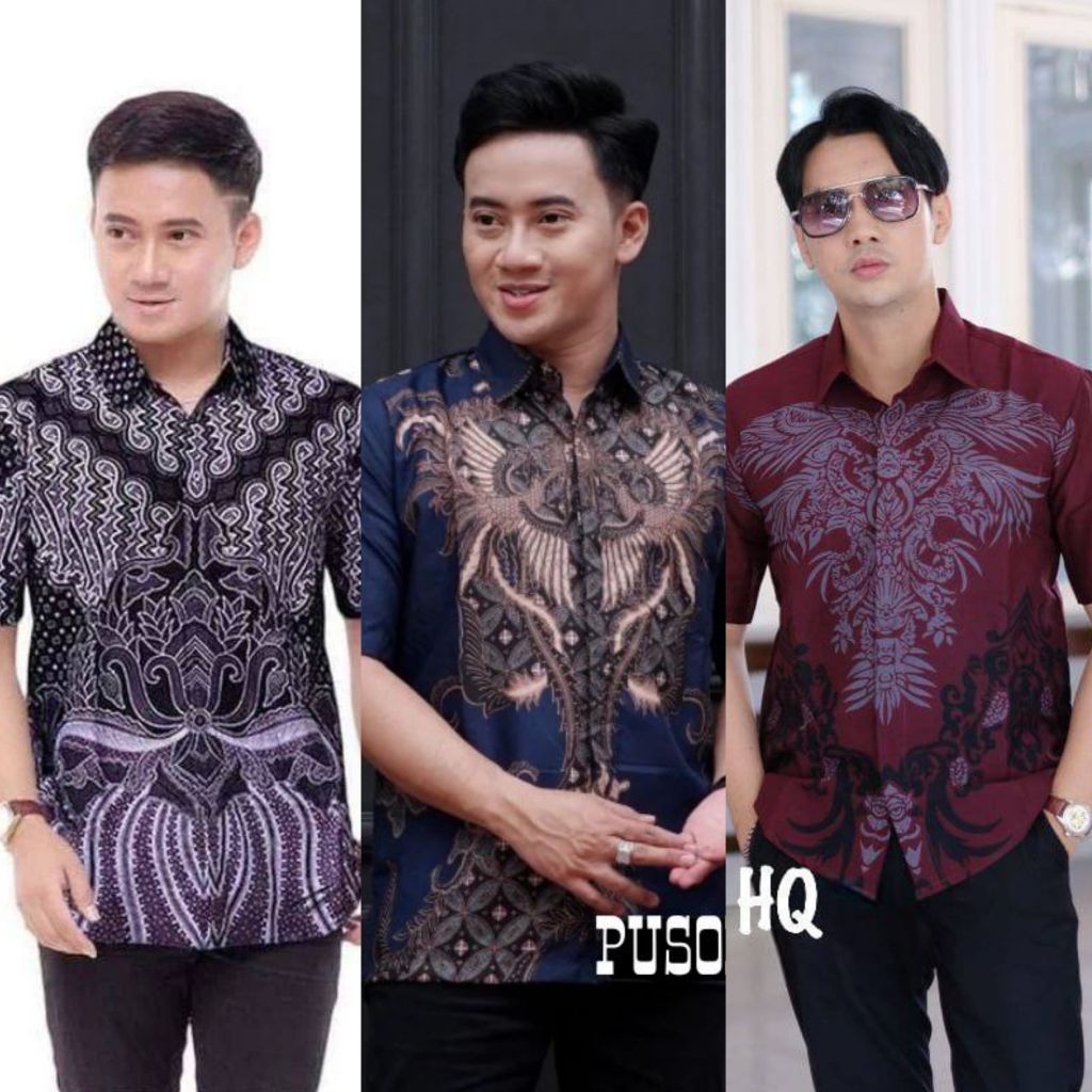 PAKET 3 PCS Kemeja lengan Pendek motif batik pria baju kondangan seragam halus