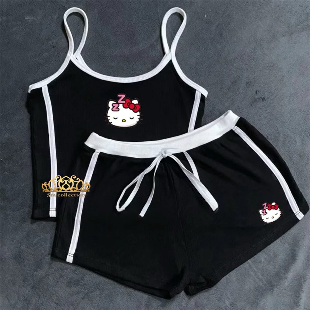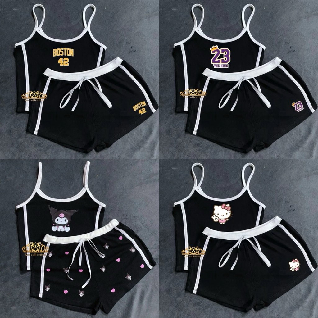 SM COLLECTIONN Setelan Wanita Celana Pendek Baju Santai Nyaman Motif Print