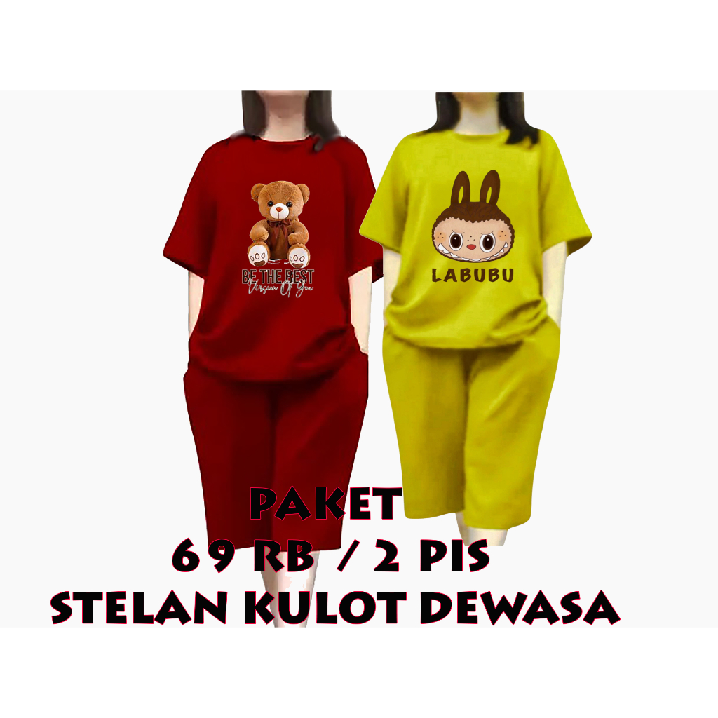 Paket Hemat 2PCS, 3PCS, 4PCS GROSIR Setelan celana kulot dewasa wanita DTF Ukuran M L XL JUMBO