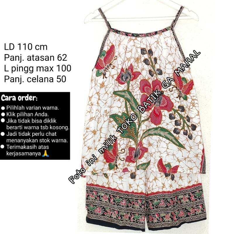 Setcel batik setelan celana pendek atasan lengan tali Bunga Siantan MOTIF CAMPUR super adem dasar putih