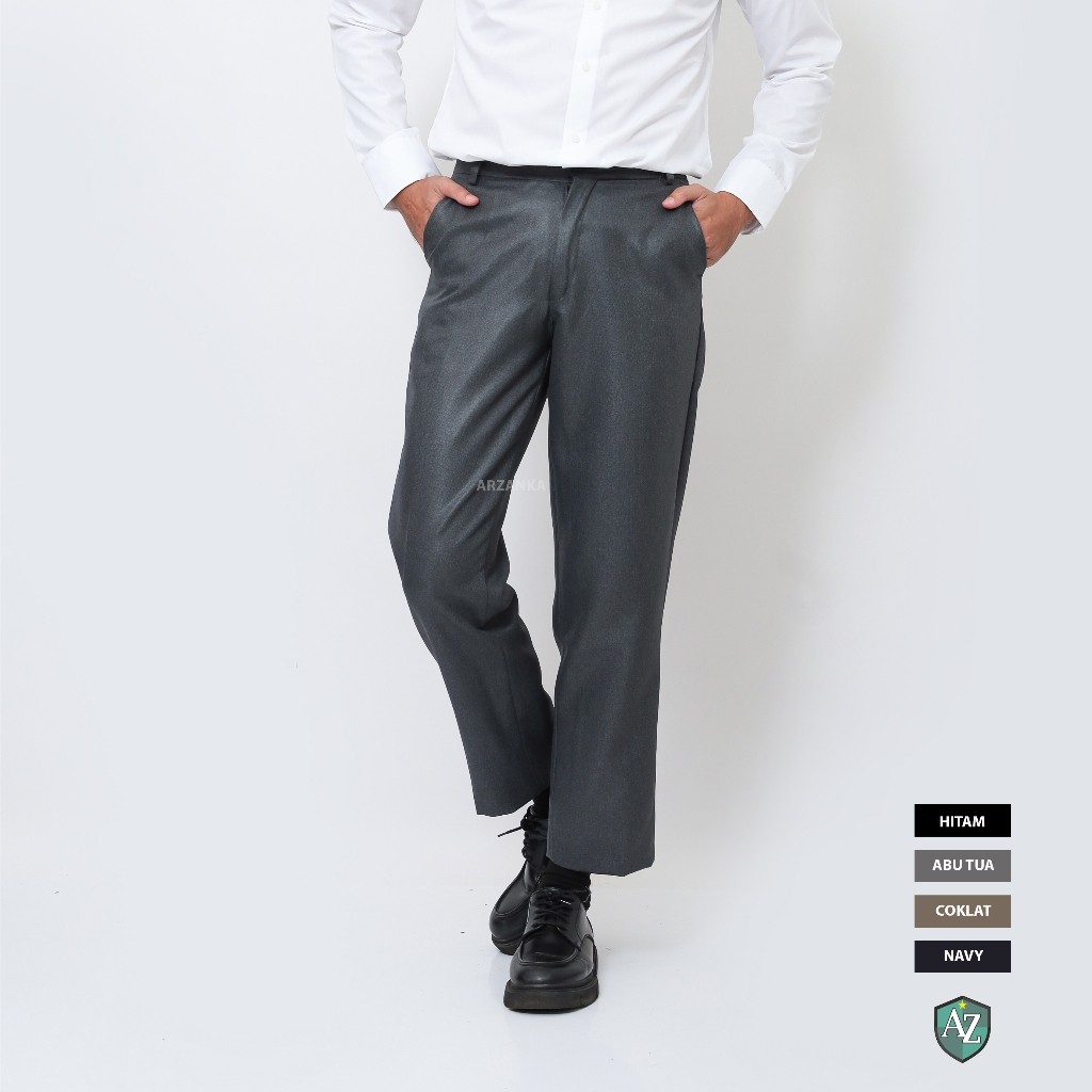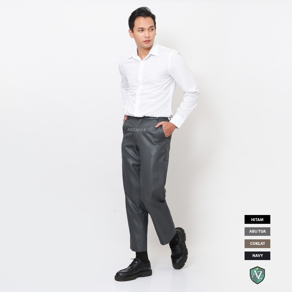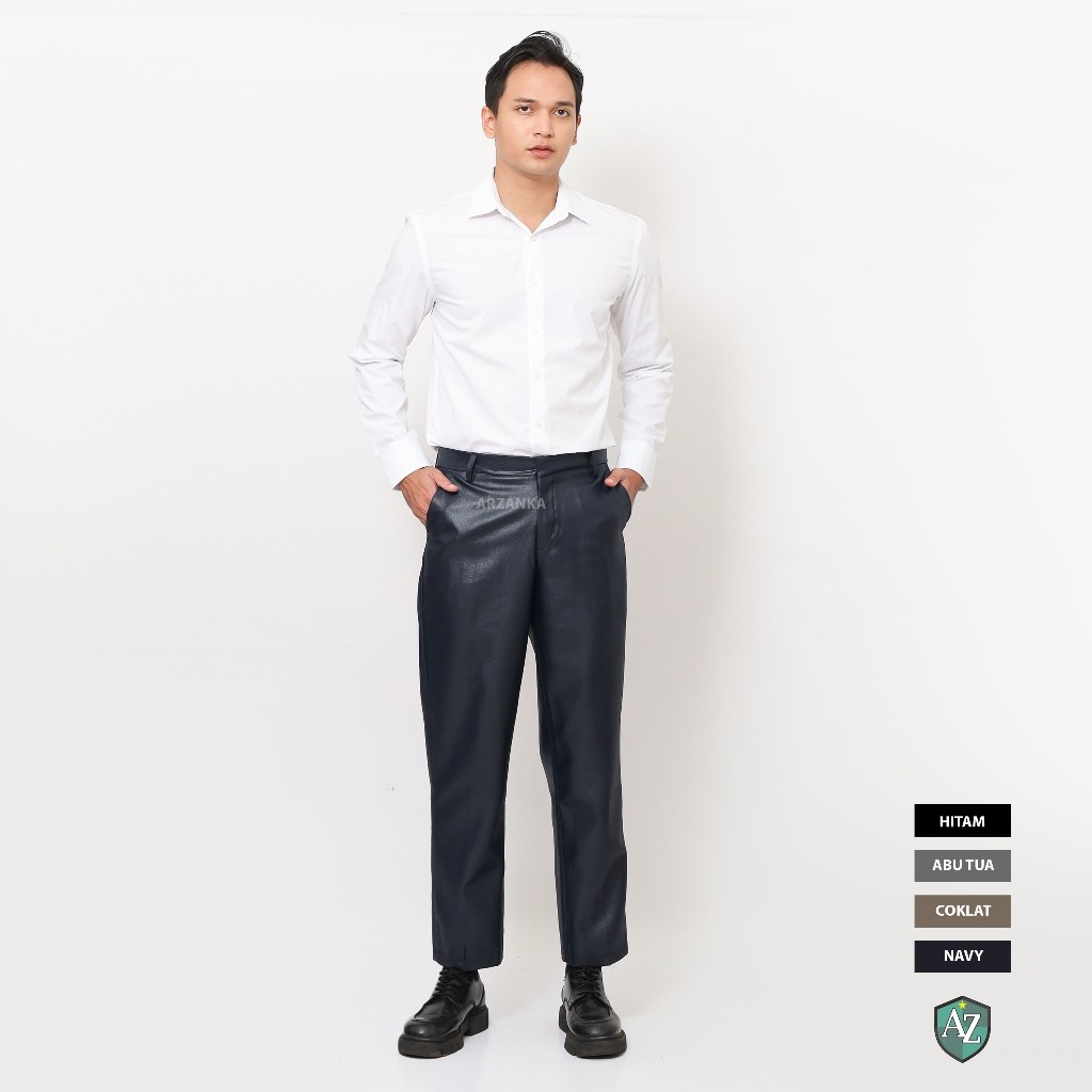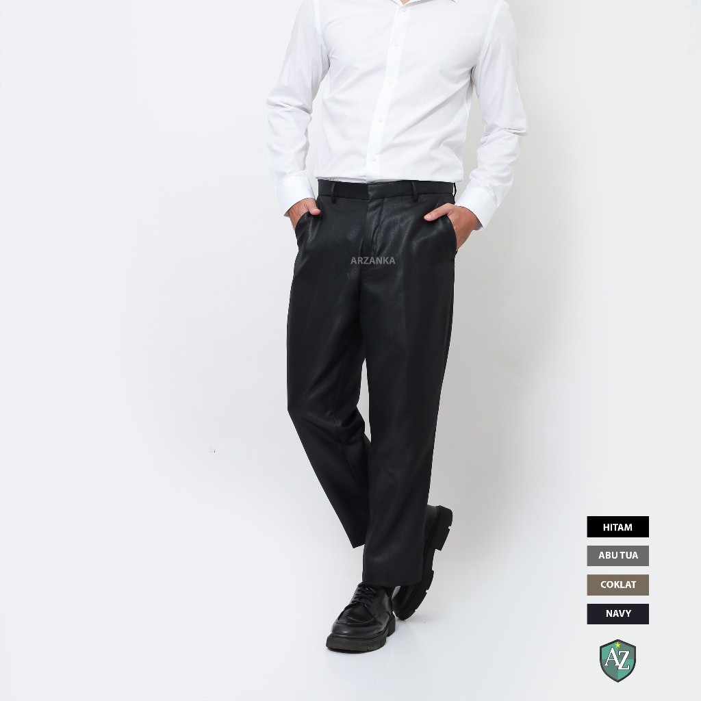 Arzanka - Celana Kerja Formal Kantor Bahan Mengkilap Metalik Hitam Abu Navy Coklat
