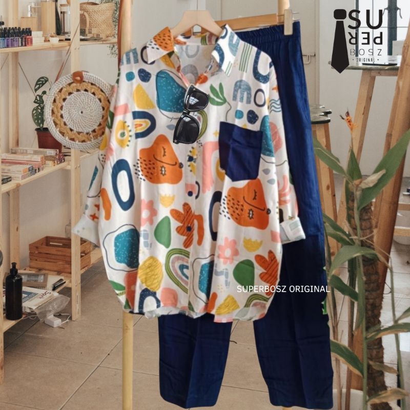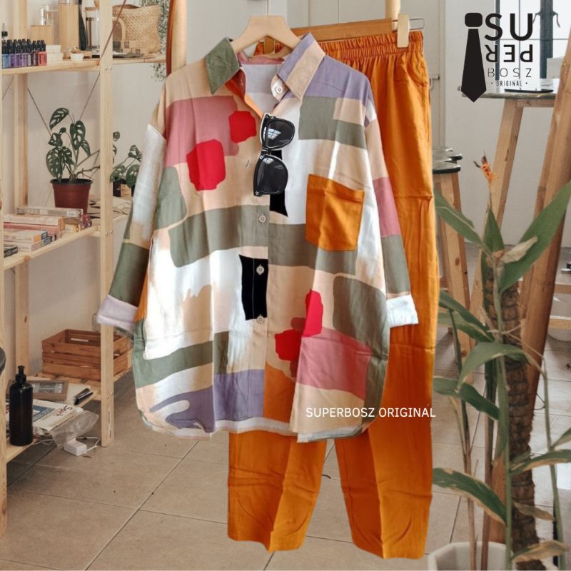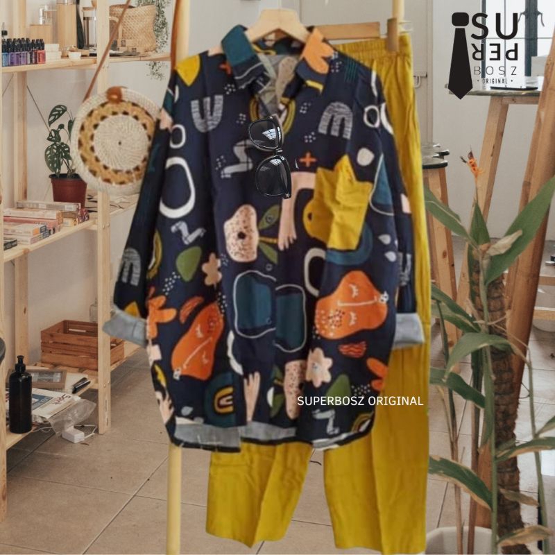 Stelan Kemeja Premium/One set wanita motif/stelan rayon premium viscose