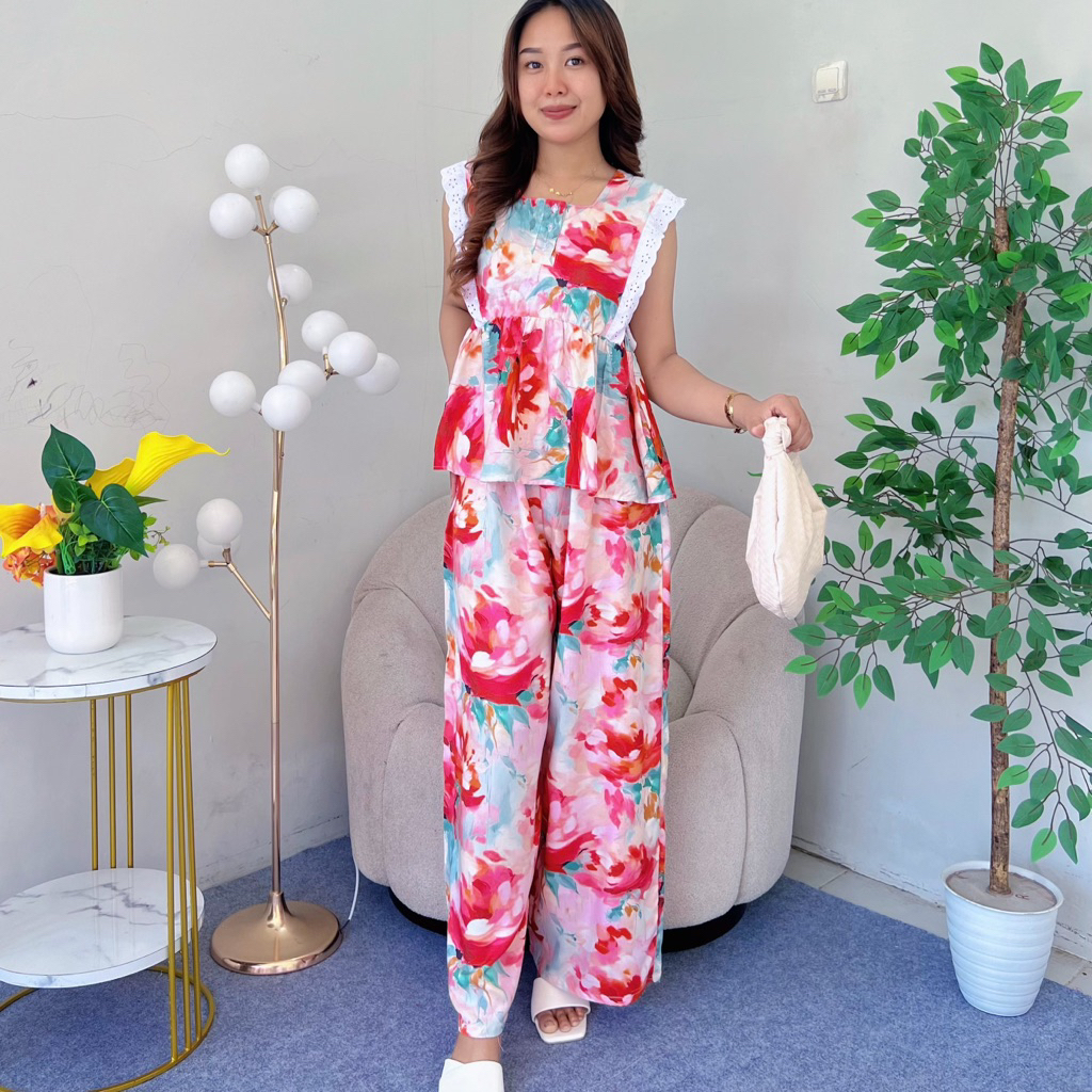 Oneset Rayon Premium Setelan Renda Celana Panjang Jenny Set