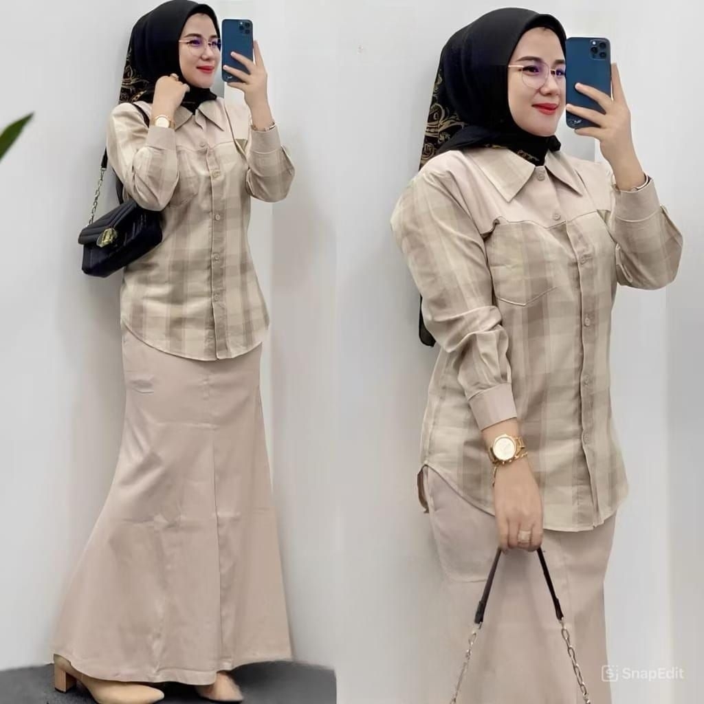 Stelan Rok Chinos Mix Haruka Premium One Set Wanita Dewasa Terbaru 2025