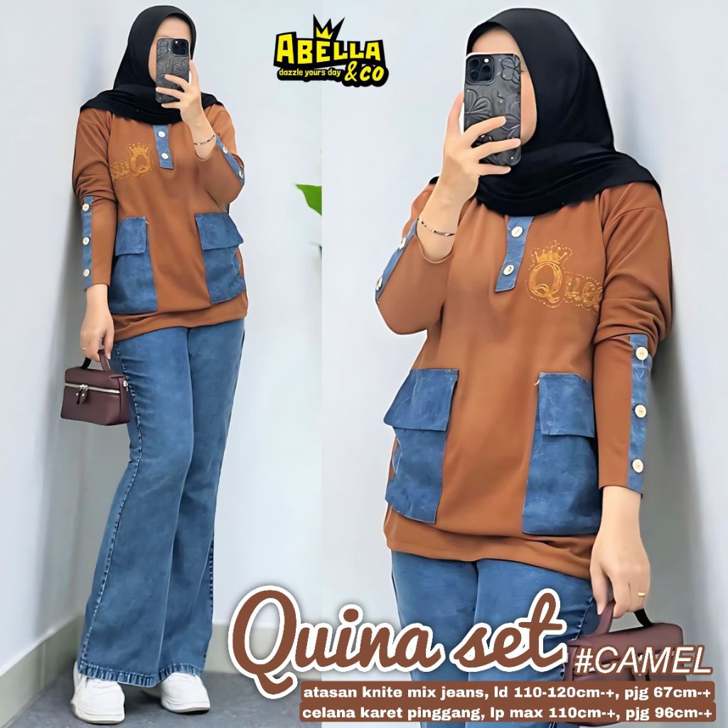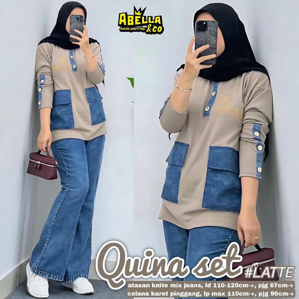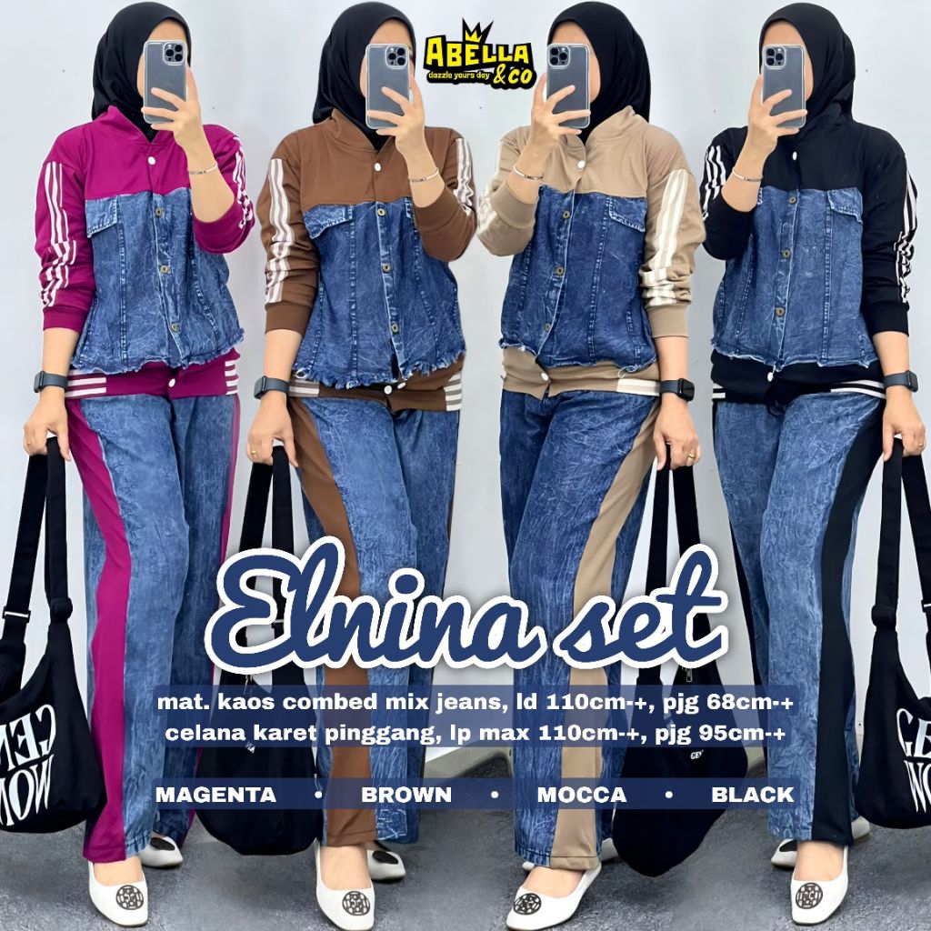 ElNina Set Setelan Atasan Dan Celana Panjang Kaos Combed Mix Jeans Wash