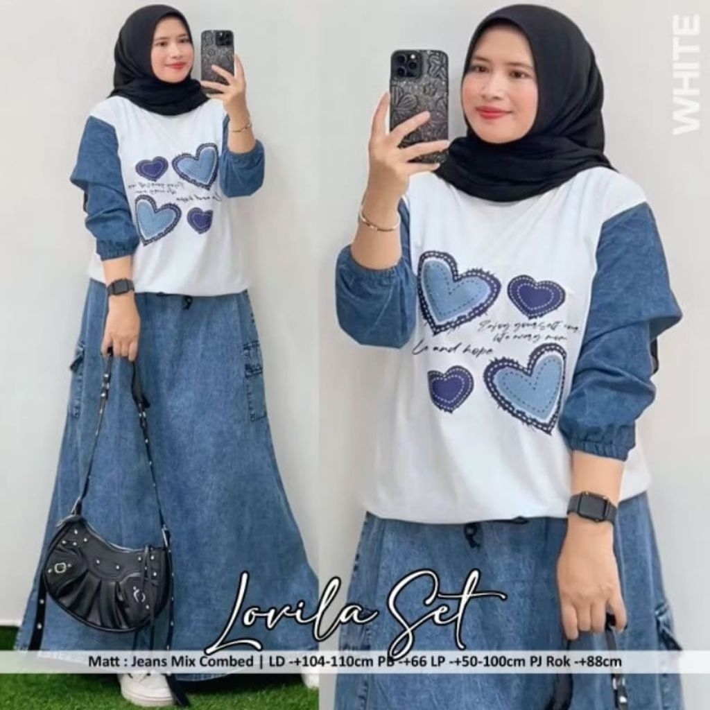 SETELAN ROK KAOS COMBAD ROK JEANS DANO SET TERBARU