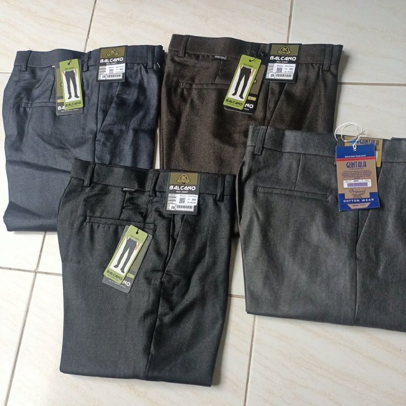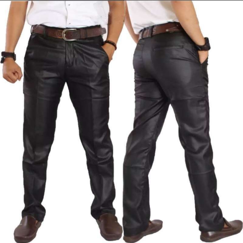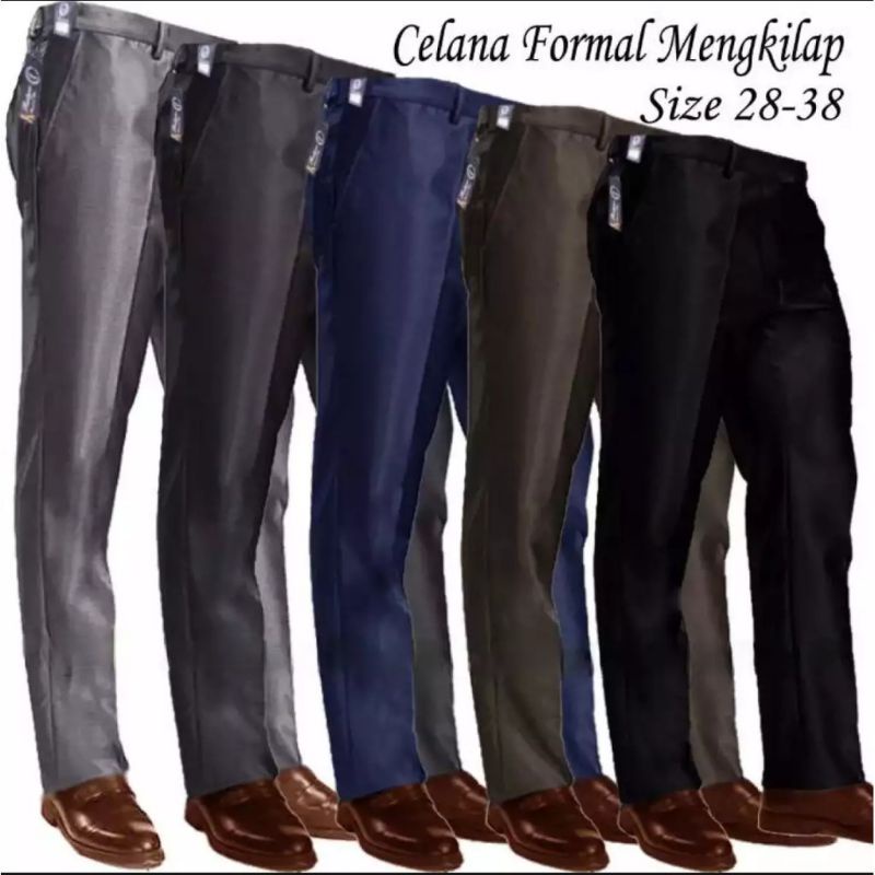 Celana Formal Pria Bahan Mengkilap Slimfit Kerja Dasar Metalik UK 27-44 Navy Hitam