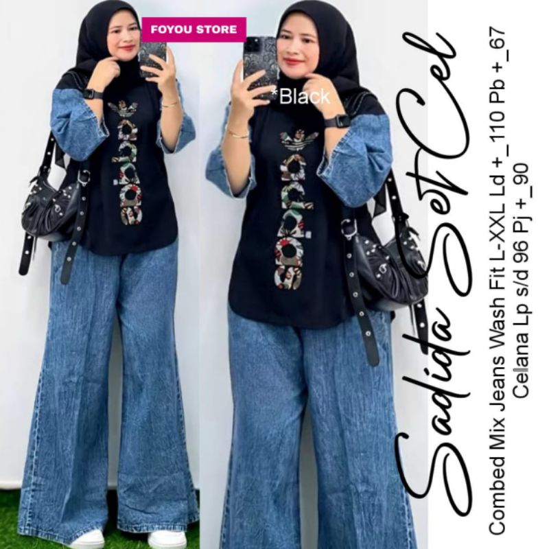 SADIDA SETCEL COMBED PREMIUM MIX JEANS IMPORT FIT XL XXL SETELAN CELANA COMBED WANITA TERBARU