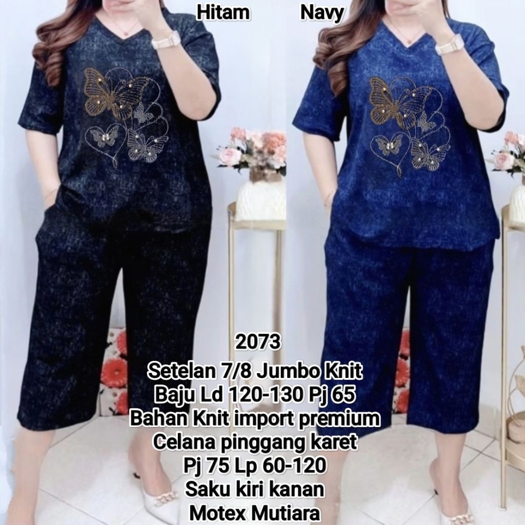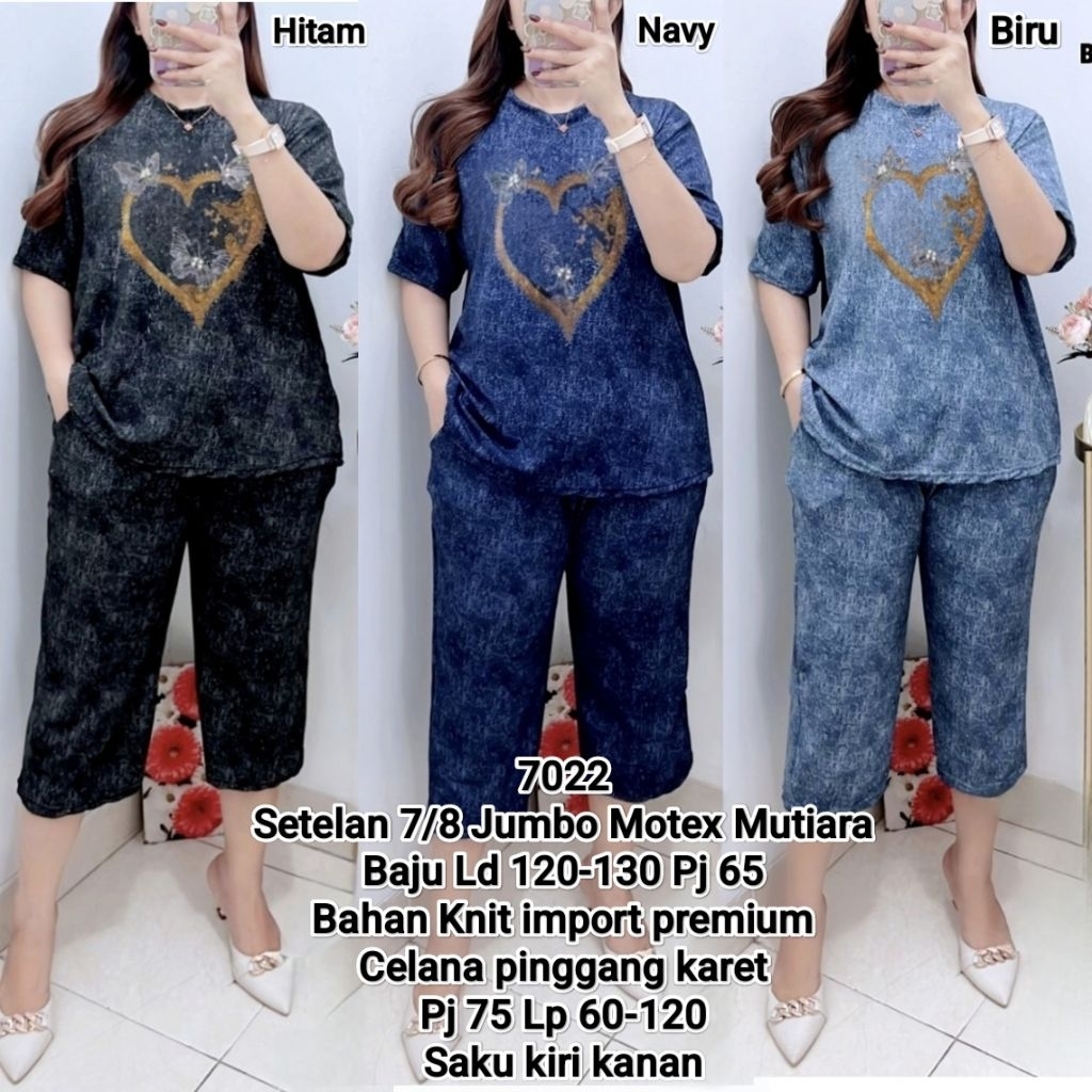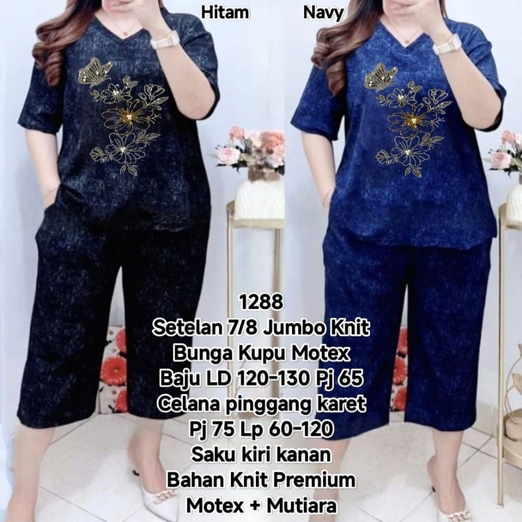 Setelan 7/8 Jumbo Wanita Knit Motex Baju LD 120 Celana Pinggang Karet LP 60-120 Saku Kiri Kanan