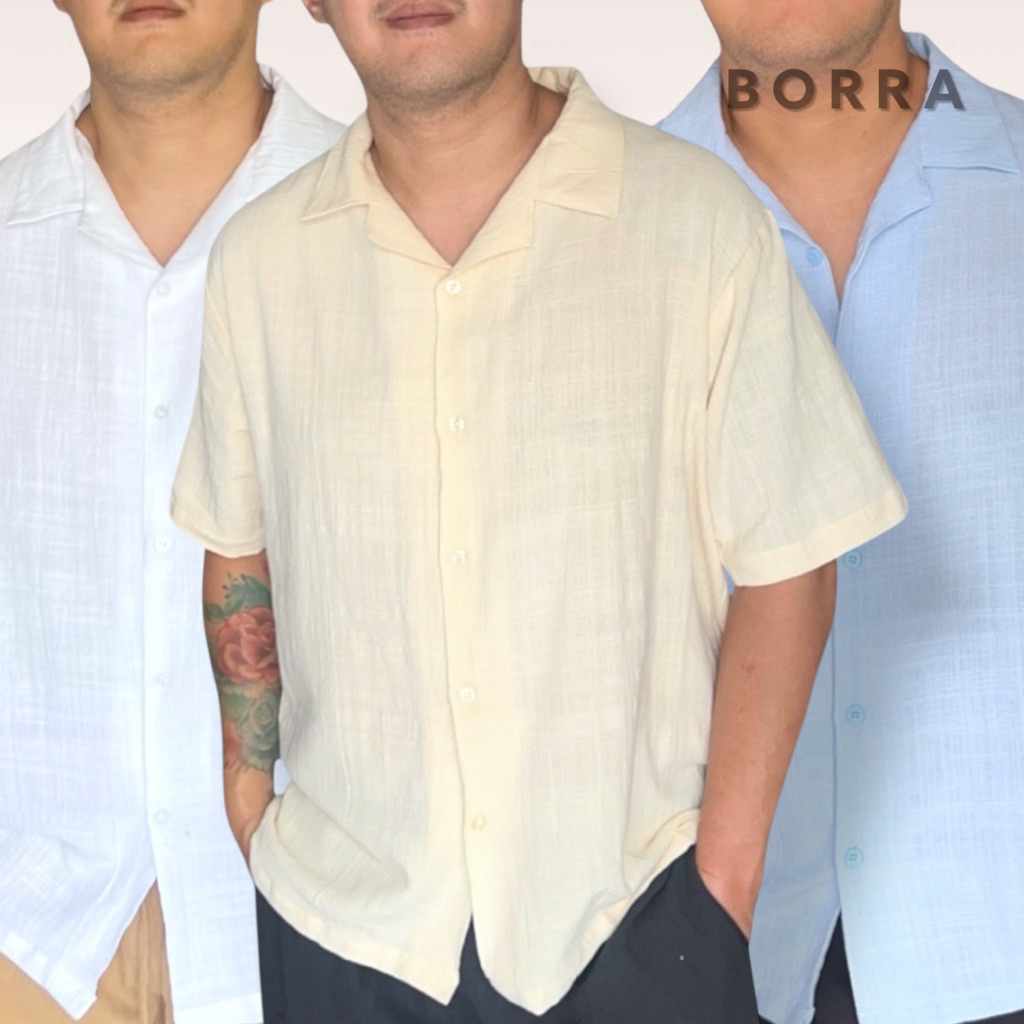 KEMEJA LINEN PRIA LENGAN PENDEK CASUAL KERAH BOWLING ADEM RINGAN Size M - XXXL | BORRA