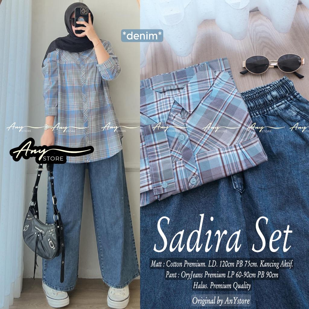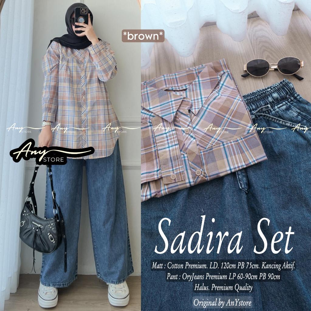 Setelan Kemeja Wanita Sadira Set Bahan Katun Motif Kotak Celana Jeans Ukuran Jumbo LD 120 cm