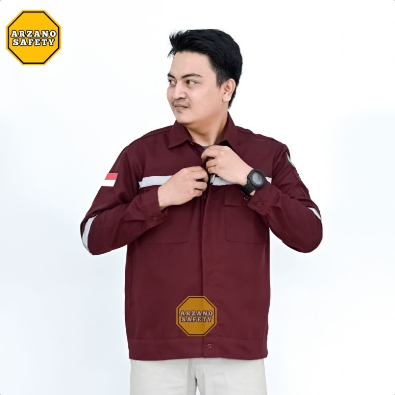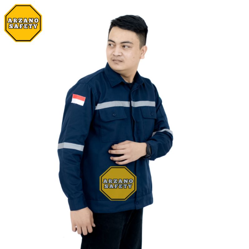 Baju safety lengan panjang seragam kerja lapangan kemeja proyek atasan bahan premium