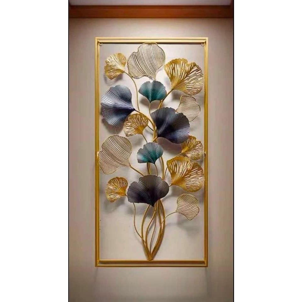 Walldecor Berkah Hiasan Dinding Big Size 120x60 Frame Metal Gold Wall Decor Daun Bunga Gingko