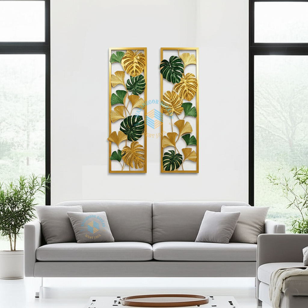 Walldecor Berkah Set Isi 2 Hiasan Dinding Besi Aesthetic 110*30 Cm Dekorasi Frame Metal Gold Mewah