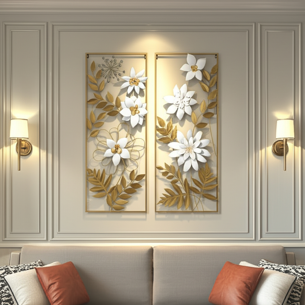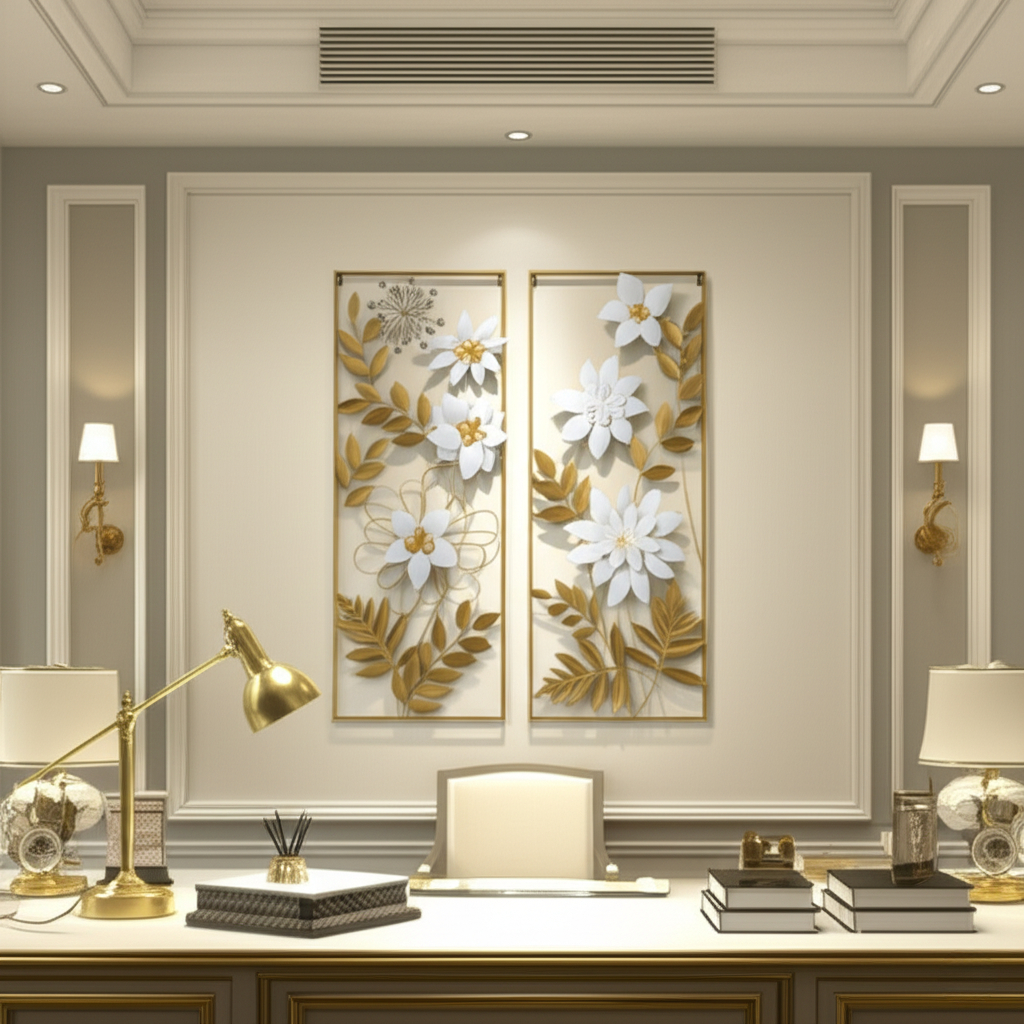 Hiasan Dinding Besi Aesthetic 1 Set Isi 2 Melati Putih 85x31cm