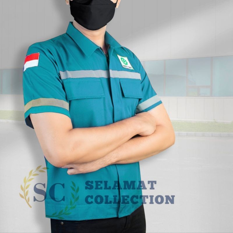 baju safety kerja promosi baju safety lengan pendek terbaru.baju kerja.baju tambang.wesrpack.seragam safety termurah(POLOS PENDEK)