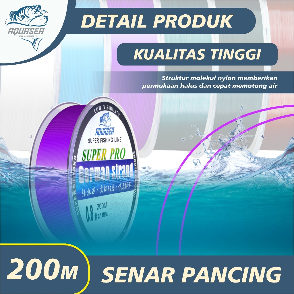 AQUASEA Tali Pancing Germany200m Senar Pancing Premium Invisible Bahan Nilon Tahan Lama Panjang