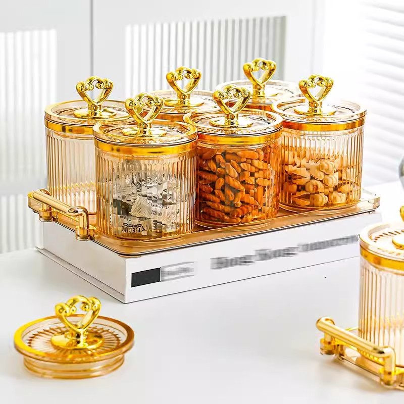 7 In 1--Toples Set Mewah Bersegel Dengan Nampan Tangki Segel Plastik Guci Makanan Dan Kotak Penyimpanan Dapur Toples Se