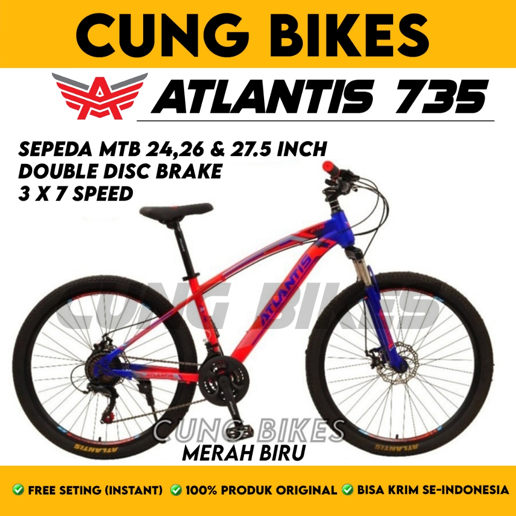Sepeda Gunung Atlantis Mtb 24 26 Inch 735 Dan 27,5 Inch 730 Diskbrake 21 Speed