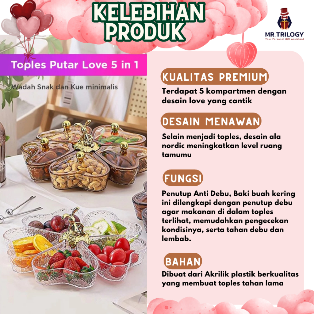 Toples Kue Love Putar 5 In 1 Akrilik Transparan Penyimpanan Makanan Candy Sereal Toples Snack Wadah Storage Jar Kontaine