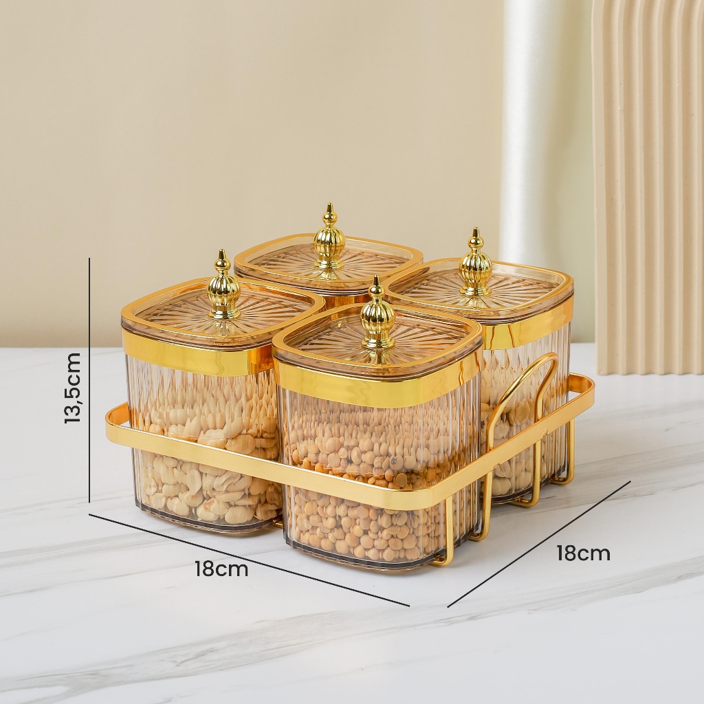 Aveline 3/4/6 Sets Toples Set Penyimpanan Makanan Dengan Nampan Rak Makanan Ringan Toples Nampan Makanan Ringan Toples P
