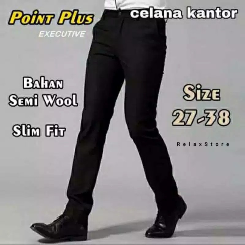 Celana Bahan Dasar Kantor Slimfit Pria Merk Poin Plus Original Dasar Formal Kantor Panjang Pensil