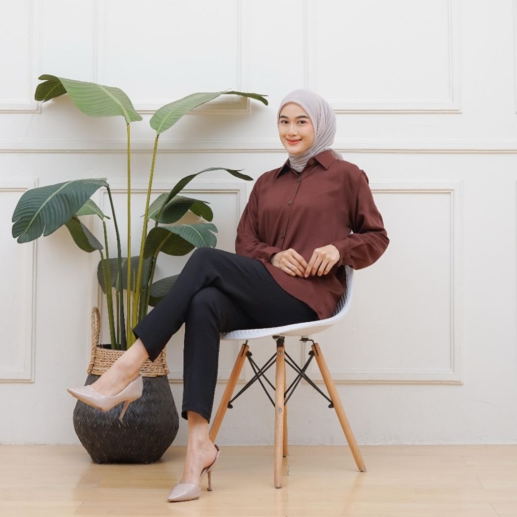 HemClo Kemeja Wanita Polos Rayon Premium Ukuran M L XL XXL 3XL 4XL