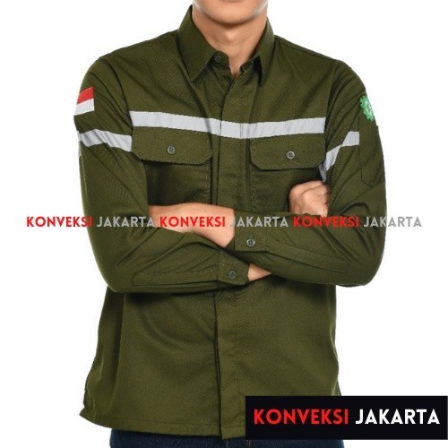 Baju Wearpack Kemeja Safety K3 Proyek Tambang Lengan Panjang - Pakaian Seragam Werpak Kerja Atasan Scotlite Lapangan Warna Hijau Army Pria Wanita