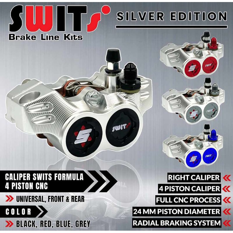NEW KALIPER SWITS - R/T STAGE - MARZOCCHI - 8.1 FORMULA 4PISTON 4P KANAN COIN WARNA FULL CNC SILVER & GREY EDITION